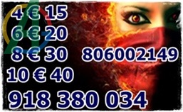 806002038 y 806002149 Tarot Economico: 0,42€ Por Min y 932424782 y 918380034 - 4€ 15 mts. 6 € 20 mts. 10€ 40 mts. 12€ 45 mts 20 € 90 mts todas tus preguntas No dudes en consultarme, siempre tendras una respuesta a te el poder de mi Videncia, las Gemas, las Runas y diversos Tarots y Oraculos que me ayudaran visualizar todo lo que te preocupa y darle solucion precisa....... te esperamos las 24 horas del dia. Solo mayores de 18 anos. Servicio prestado. M.A.L. Apartado de correos 164 (46002) Valencia