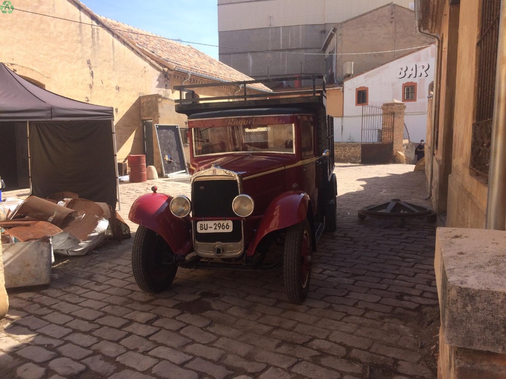 Esta preciosidad de furgoneta ha participado en varios rodajes de series de televison regional de la época de la guerra civil.