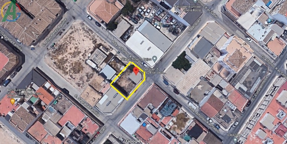 Venta parcela urbana en el centro de Pilar de la Horadada, situado en esquina consta de 153 m2, junto a la Comisaria Policia Local, Juzgado de Paz, Tanatorio Rocamer y todo tipo de comercios, negocios y servicios ideal para vivir todo el ano a tan solo 3 km de la playa de la Torre de la Horadada, de facil acceso desde la N 332 y la autovia A-P, Telf. 626312765