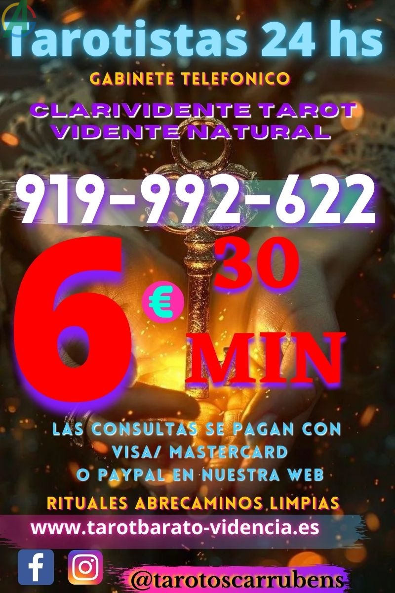 ¿Tenes problemas laborales, economicos, en el amor, familiar? Consultas al 919992622 contamos con ofertas unicas ya que somos el gabinete mas economico de Espana los 30 minutos a solo 6 euros visa cerrada, puedes pagar con tarjeta ,paypal o bizum. contamos con linea directa de 806002188 a solo 0.42 el min por telefono fijo, 0.79 el min por tel movil. Solo para mayores de 18 anos.