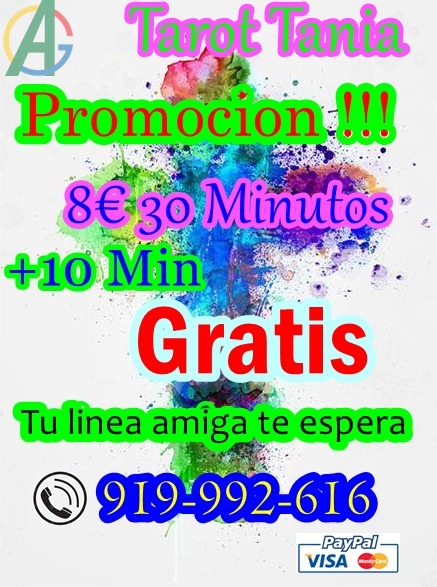 ¿Buscas respuestas a preguntas importantes? Nuestros tarotistas expertos te ofrecen una consulta precisa. Con una llamada, obten la orientacion que necesitas para enfrentar cualquier desafio. Ya sea en amor, trabajo o familia.CONSULTAS AL 919992616 NOS ENCONTRAMOS LAS 24 HS LOS 365 DIAS DEL ANO, TENEMOS LOS PRECIOS MAS BAJOS DE TODA ESPANA 30 MINUTOS + 10 MINUTOS DE REGALO A SOLO 8 EUROS CON VISA CERRADA, PUEDES PAGAR CON BIZUM ,TARJETA O PAYPAL. PUEDES CONSULTAR DIRECTO AL 806002188 A 0.42 EL MINUTO X TELEFONO FIJO O 0.79 EL MIN X TELEFONO MOVIL. SOLO PUEDES CONSULTAR SI ERES MAYOR DE 18 ANOS.