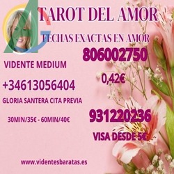TAROT DEL AMOR CERTERO GLORIA SANTERA ECONOMICO BARATO FIABLE 4€/17MI VIDENTE ESPANOLA CON FECHAS EXACTAS EN AMOR