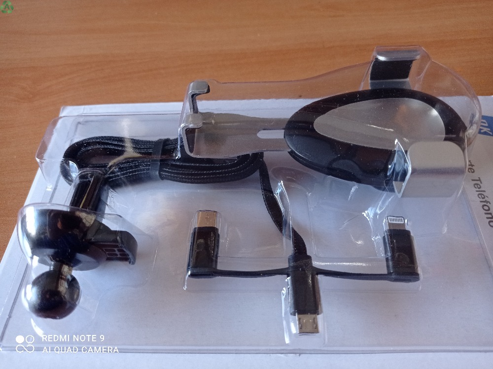 Kit soporte para colocar el móvil, en la rejilla de salida, del aire acondicionado. Con cable 3 en 1 ( USB, micro; USB tipo C ), que mide 1 metro. Nuevo a estrenar. ENVÍO GRATIS a toda España, y embalaje bien protegido.