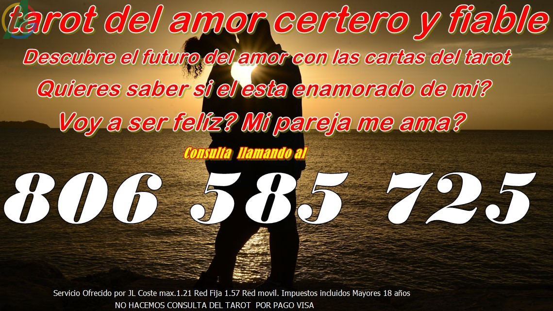 consulta llamando al numero 806 585 725 Disponibles las 24h. Tu Consulta es Confidencial Descubre el futuro del amor con las cartas del tarot. Consigue la felicidad y la pasión con tu pareja.