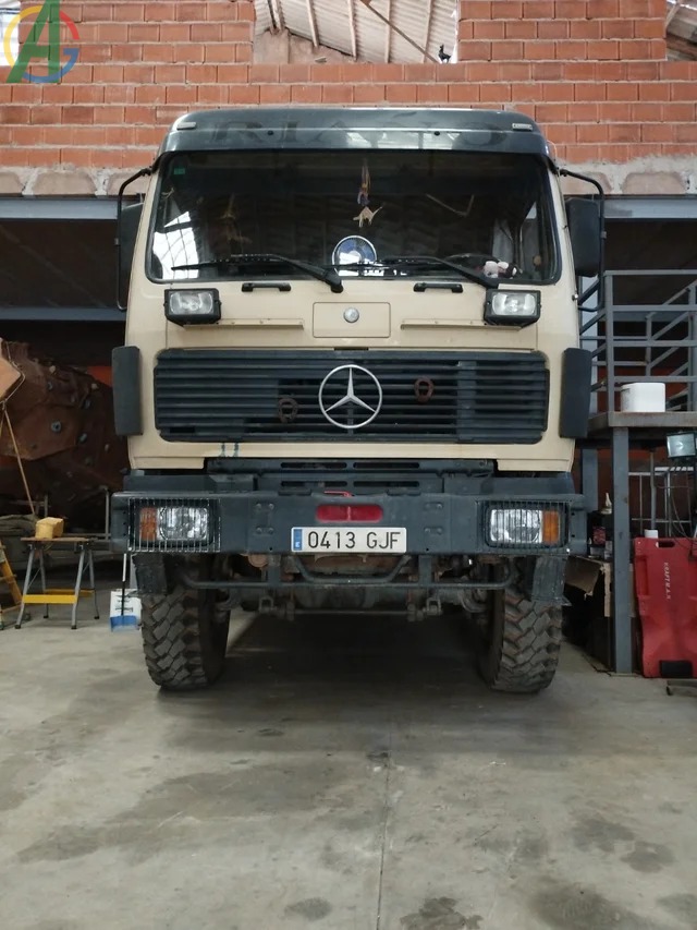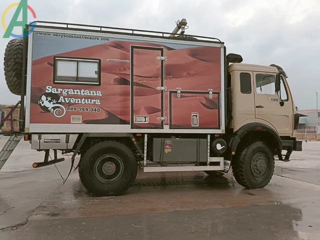 Mercedes autocaravana todo terreno, 350 cv. Motor 8 cilindros en V, 14618 c.c. dos turbos, 4x4 permanente, 3 bloqueos, grupos largos, reductora.