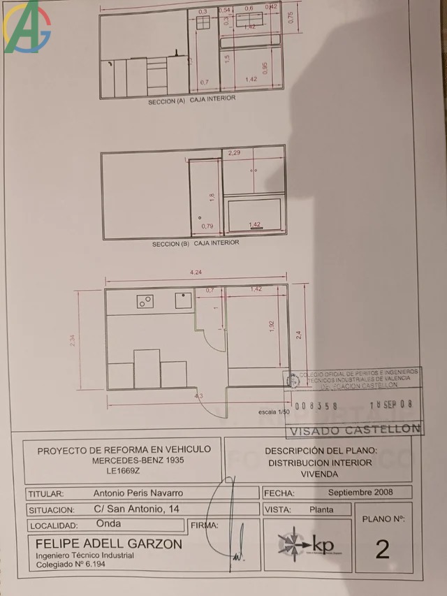 Todo homologado en ficha. Carnet C. Dos emisoras, nevera, 240 l. aguas limpias, 90 aguas grises, WC casette, etc.