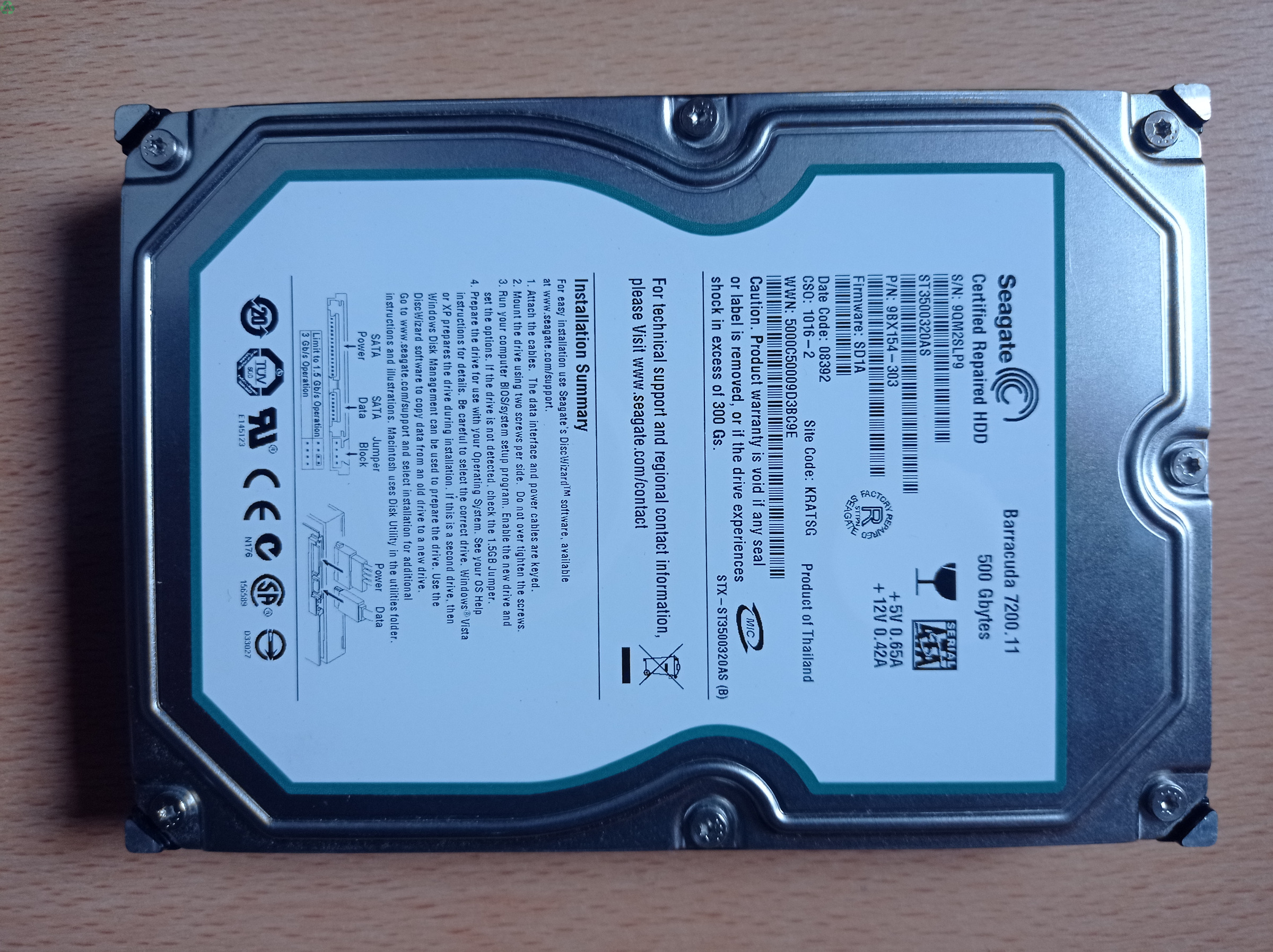 Disco Duro Seagate Barracuda 7200.11 de 500 GB. Su precio 20€