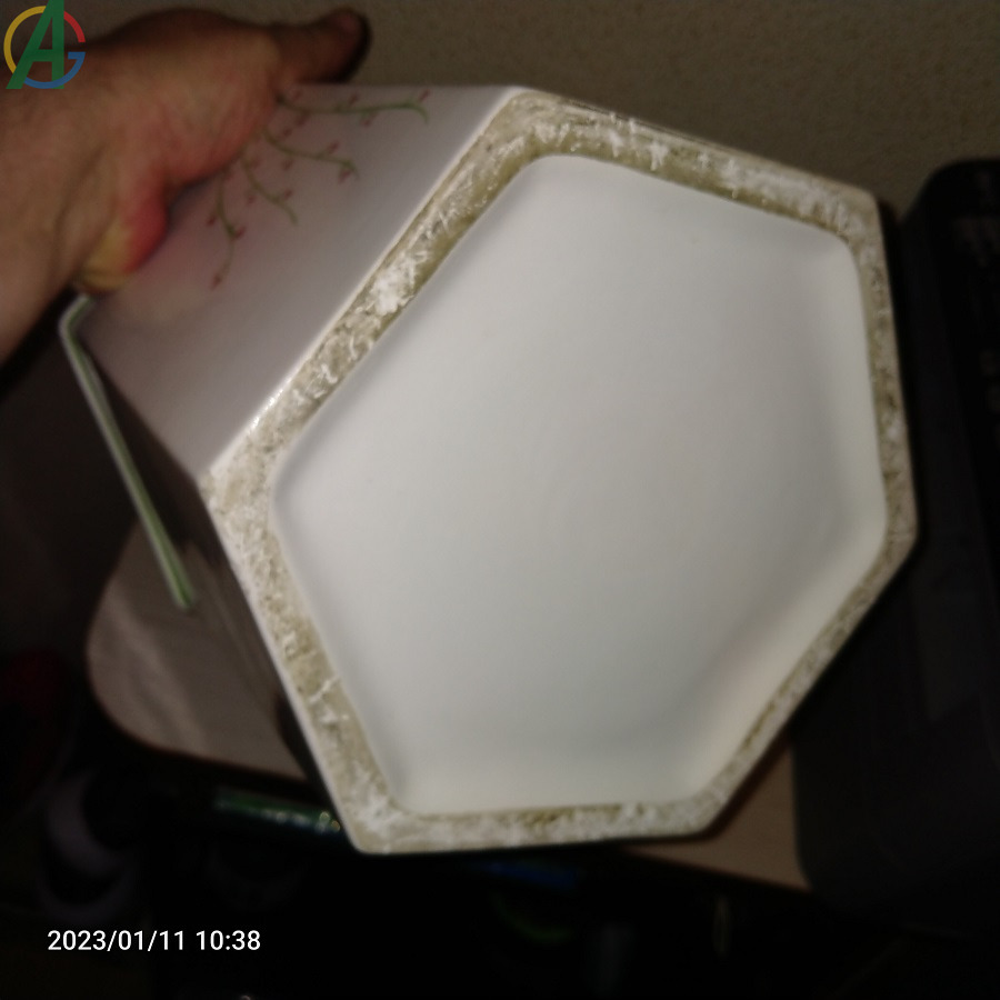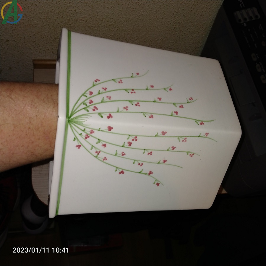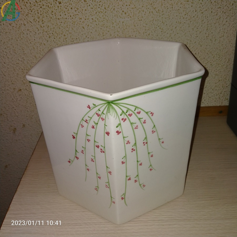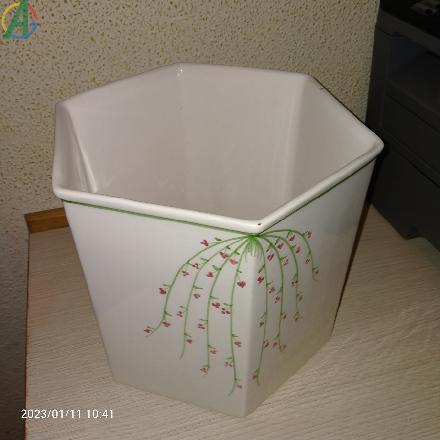 Macetero decorativo con motivos ornamentales de flores. Creo que es de cerámica esmaltada. En muy buenas condiciones. Recién limpiado. Tiene 20´5 cm.de alto x 72 cm. de ancho.