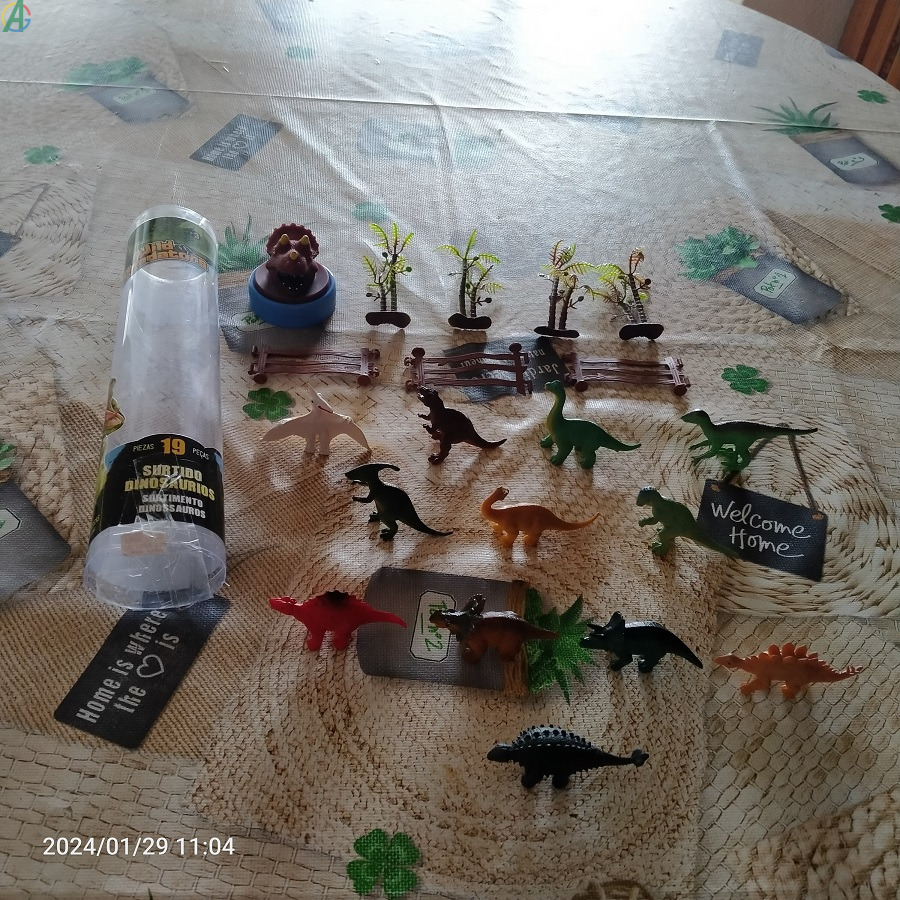 DINOSAURIOS PEQUEÑOS , NUEVOS, SIN USAR. EN SU RECIPIENTE CONTENEDOR. ESTÁ FORMADO POR 19 PIEZAS : 4 PIEZAS DE PALMERA, 3 PIEZAS DE VALLAS Y 12 PIEZAS DE DINOSAURIOS.