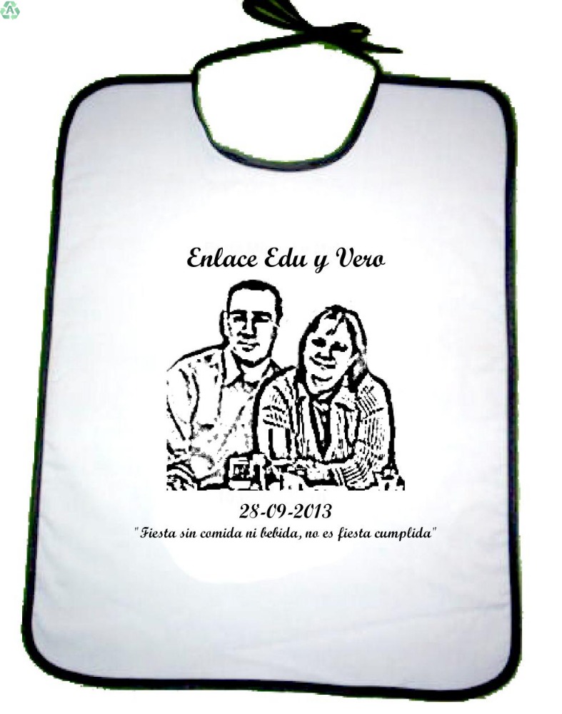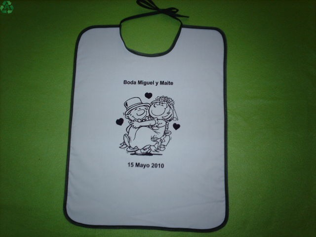 Sorpréndelos con un original babero de tu boda con la foto, día y nombre.